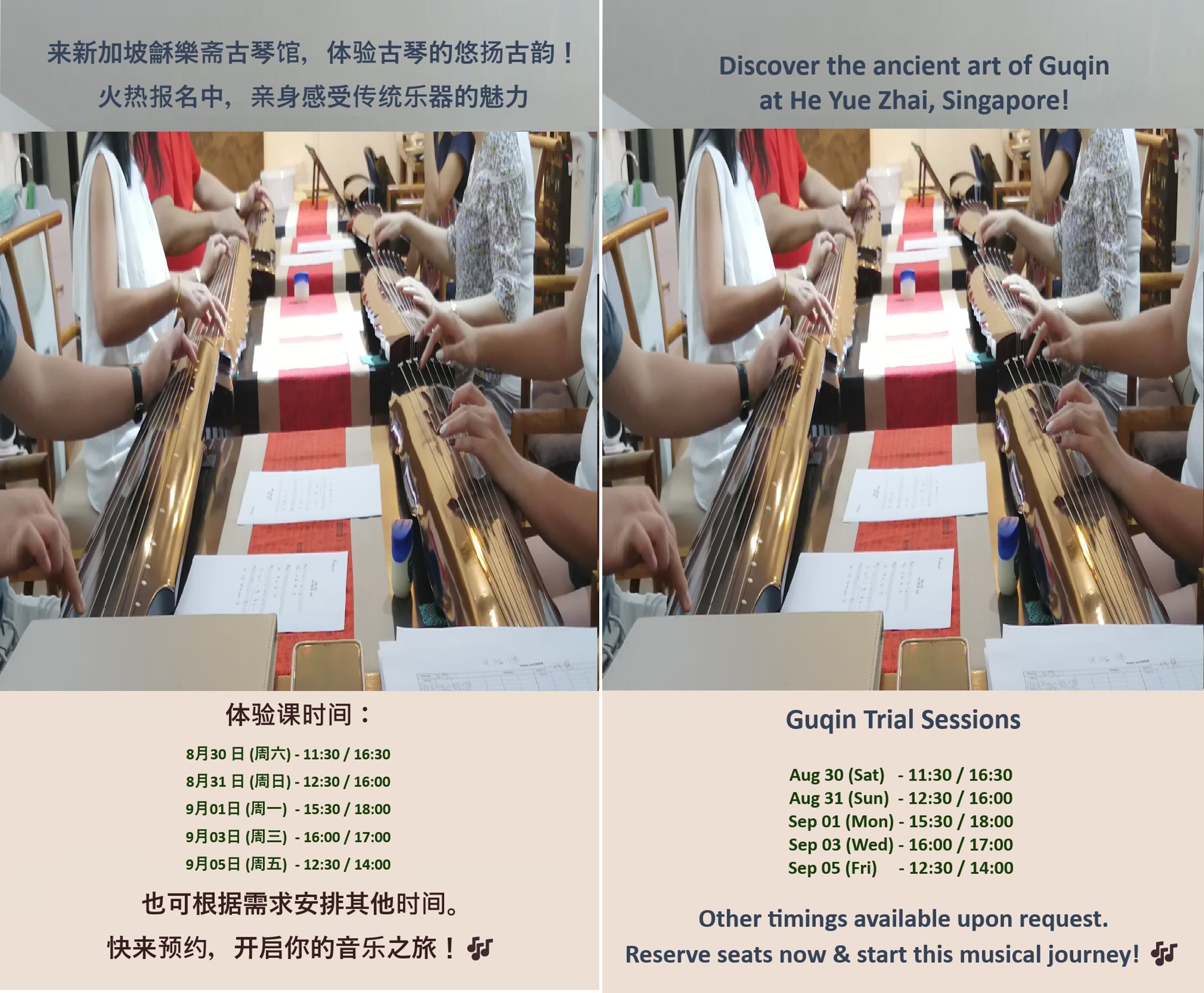 本周古琴体验课 … 新加坡首创 … 中、英版 … 开放预约!